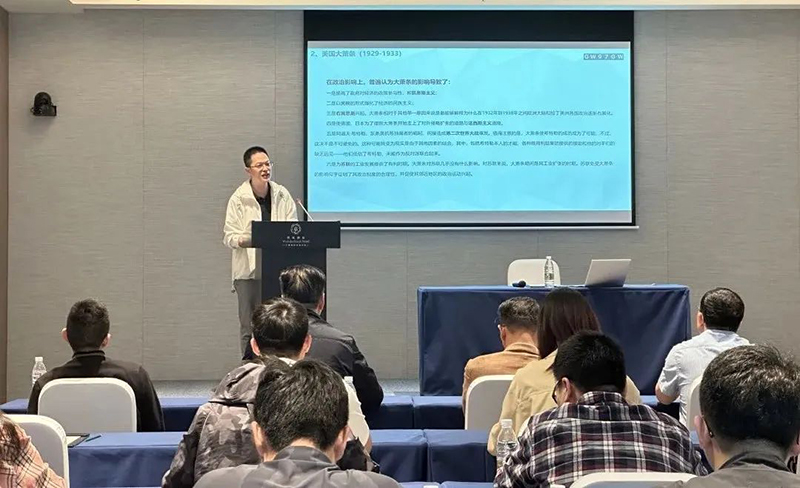 冶金物資鋁事業部開發部經理江濤從宏觀角度概括講解了主流經濟學家對經濟的“新”周期、新危機、新機遇的看法,以經濟學著作為依托,對金融危機的表癥與對應舉措進行了介紹,并結合實際提出了對應的思考,從“危”與“機”的辯證中把握發展的新機遇。